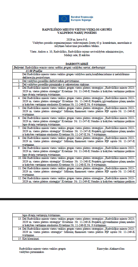 ASOCIACIJA „RADVILIŠKIO MIESTO VIETOS VEIKLOS GRUPĖ”