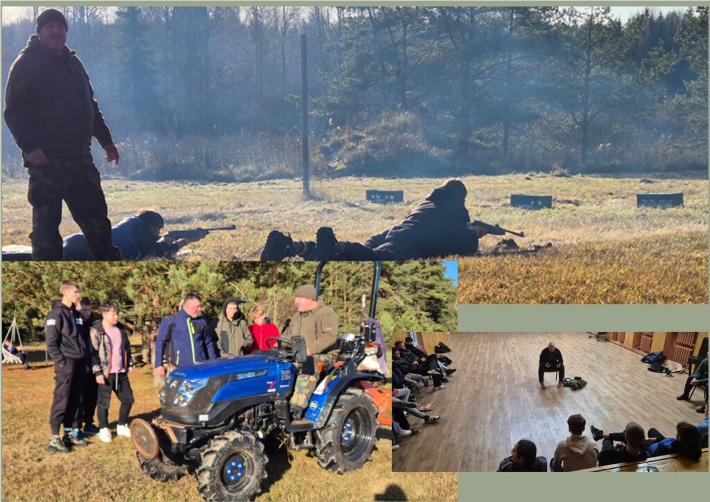 Po pusryčių vyko aktyvios edukacinės veiklos: dalyviai išbandė šaudymą, susipažino su traktoriumi ir jo veikimo principais. Pietums buvo užsakyti karšti patiekalai.